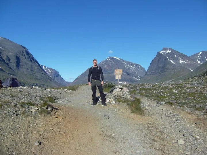 Tidig morgon på väg upp mot Kebnekaise. Bilden tagen strax efter fjällstationen.