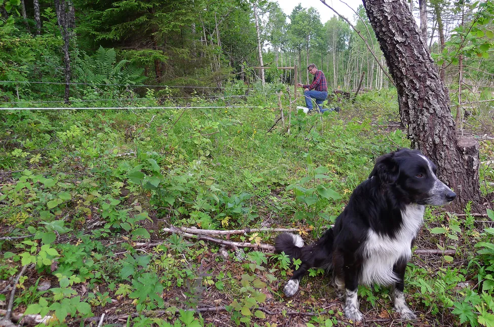 Pappa (och mamma) stängslar för att kunna ta upp fåren till nyröjda marker på berget. Birk föler med :-)