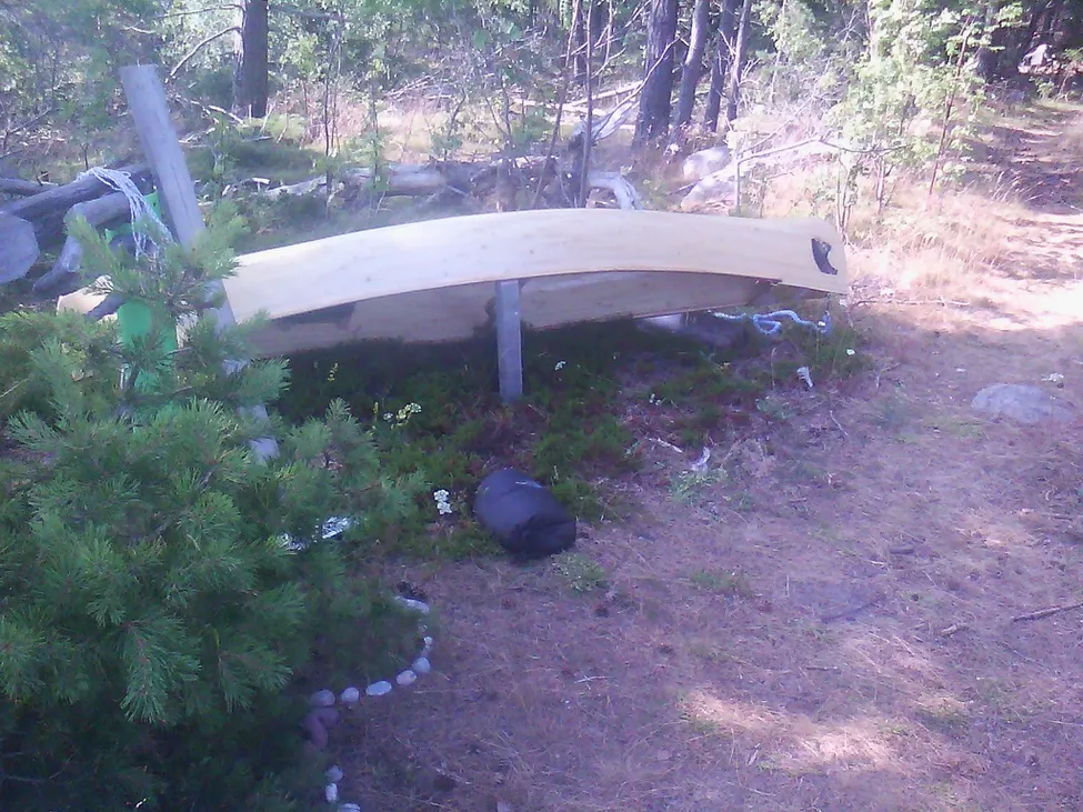 Bra och enkel bivack - eller så är det en fälla; fäst ett snöre i stödpinnen och ryck när någon nyfiken kikar in under ;-)