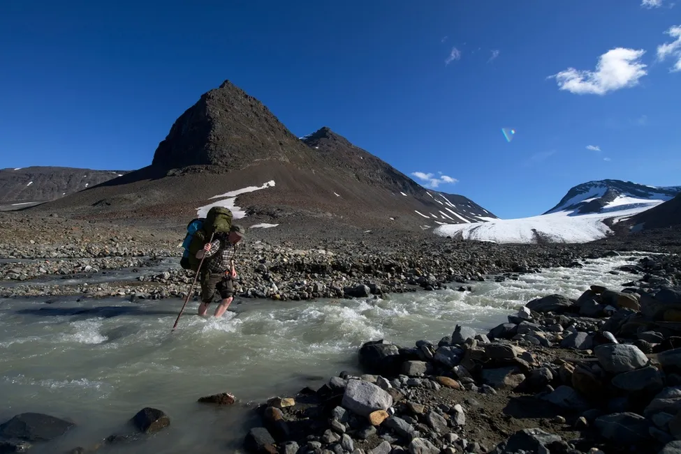..men en förklaring var att jag hade burit över 5 ryggor och en 6 åring innan, detta var sista vändan över jokken och jag höll verkligen på att frysa av tårna, hade brottom.. desto större anledning att inte fuska med käppen..