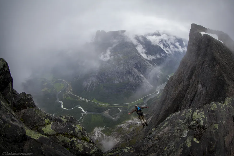 En lång flygtur till en diskret landningsplats (hopp är inte tillåtna från Trollveggen och Stabbeskaret).