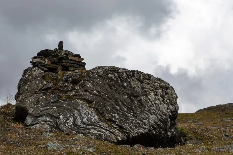 På http://www.utsidan.se/blogs/fowwe/i-sareks-utkanter-4-29-juni.htm finns en diskussion om detta, har lagt in en kommentar där. Stenen med röset dök plötsligt upp rakt framför fötterna vid vandring från Darreluoppal mot Låptåvagge.