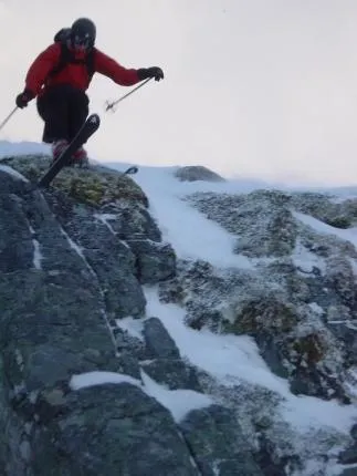 Tänk vad kul man kan ha med ett par skidor, snö och en liten klippkant.