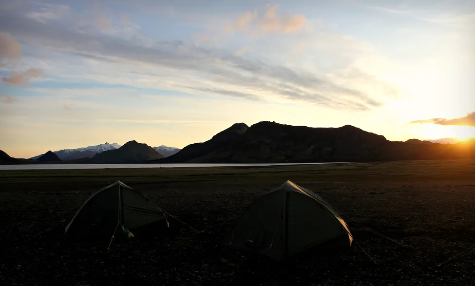 Vår camp site i solnedgång vid Alftavatn