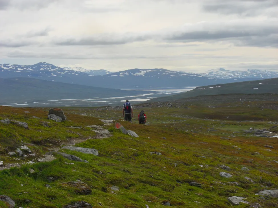 I början på nedstigningen mot Kutjaur med Vuojatädno och Vastenjaure i fjärran
