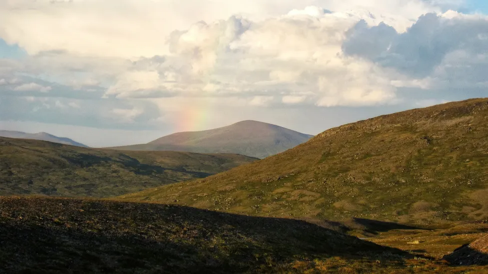 V Endalshöjden längst bort i mitten av bilden, som är tagen från norra sidan av sylmassivet.