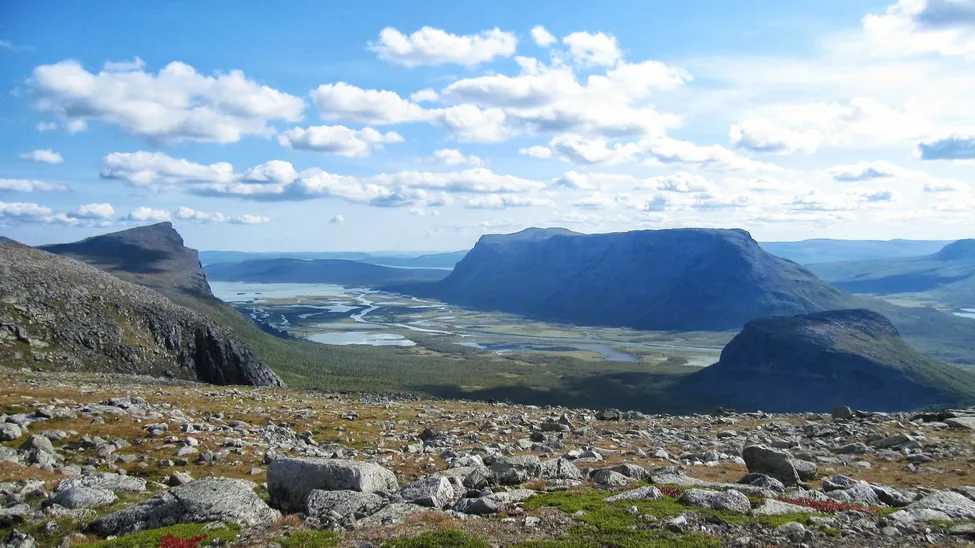 Skierffe till vänster, platåberget Tjahkkelij i mitten och Nammasj till höger.