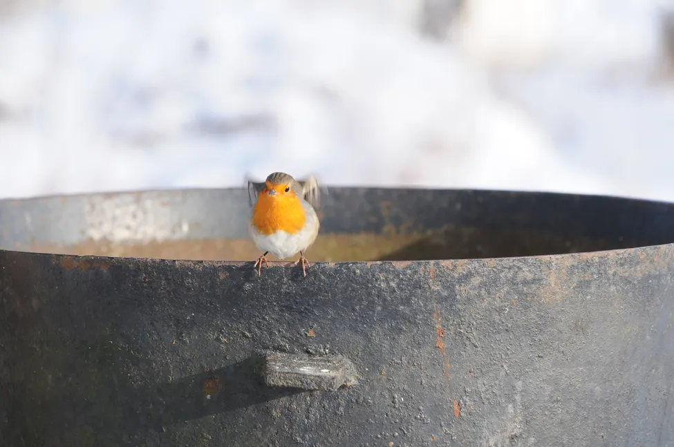 Denna skygga Rödhaken fotades med stativ samt fjärrstyrd kontroll inne ifrån köket.