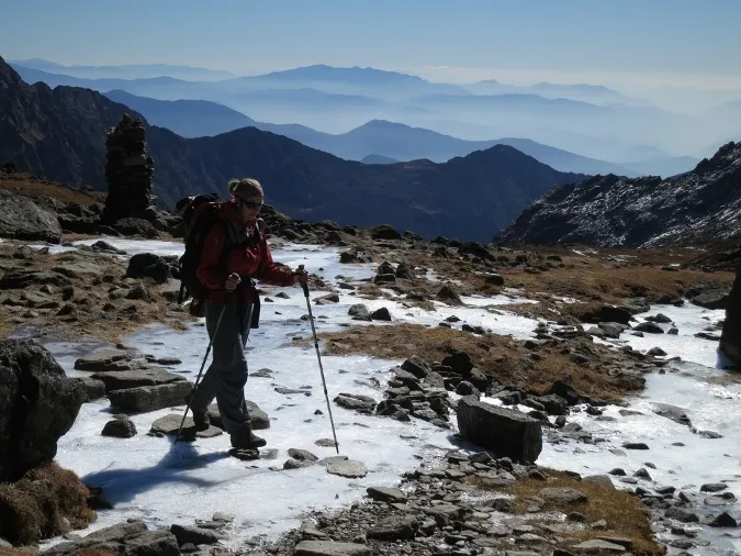6. På väg upp mot Laurebina La. Höjd cirka 4350 meter.