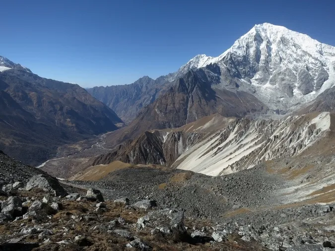 13. Langtang Valley och Langtang Lirung 7246 meter sett från Tsergo Ri 4984 meter.