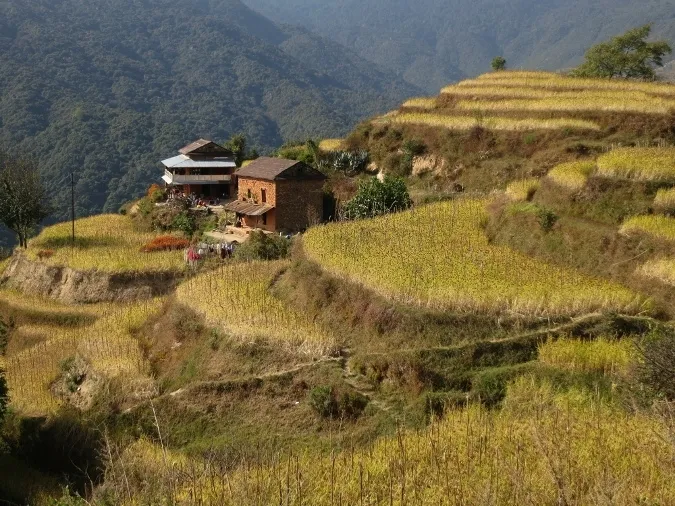 1. Terassodlingar vid Mulkharka 1800 meter. Första vandringsdagen och en bit efter starten i Sundarijal strax utanför Kathmandu.