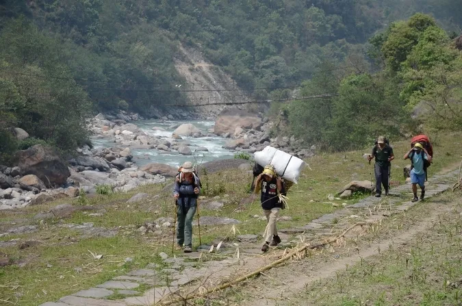 5. Gruppen längs Tamur Kosi strax efter Tapethok.