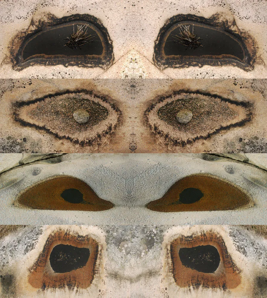 "Ögon" i klipporna vid naturreservatet Ramsvik, västkusten (fotomontage). Läs gärna bloggen om att ta till sig ett landskap.