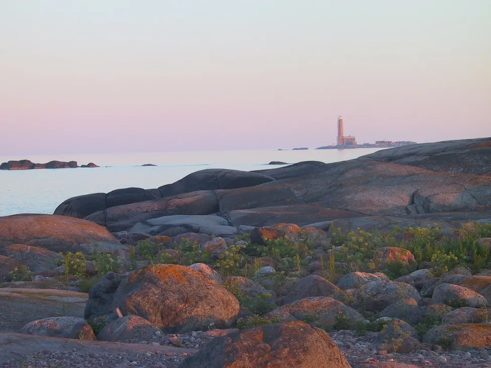 Stora Skärgårdsbandet - kvällsutsikt mot Bengtskärs fyr i Hitis skärgård