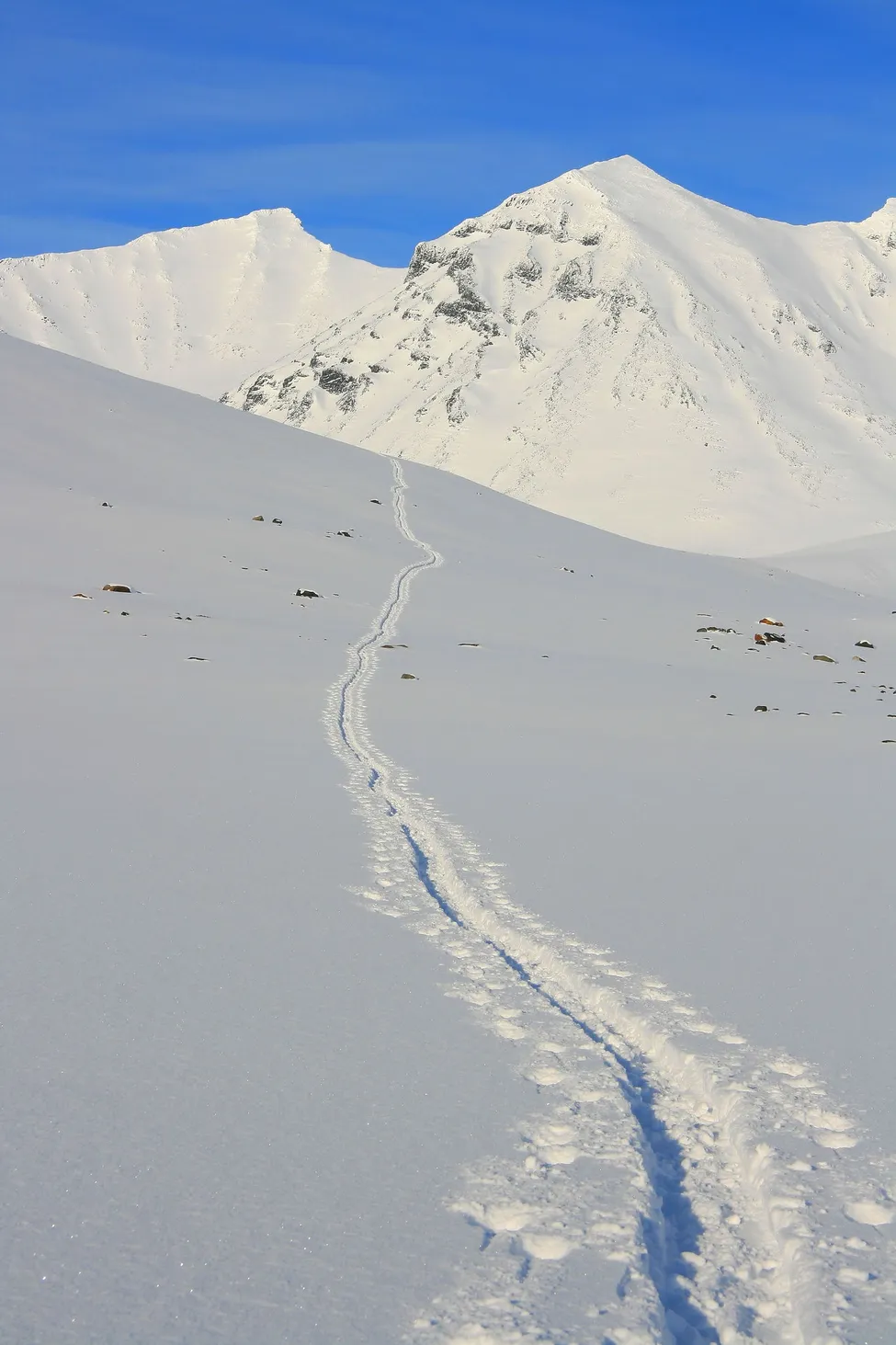 Skidspår intill Mikkaglaciären