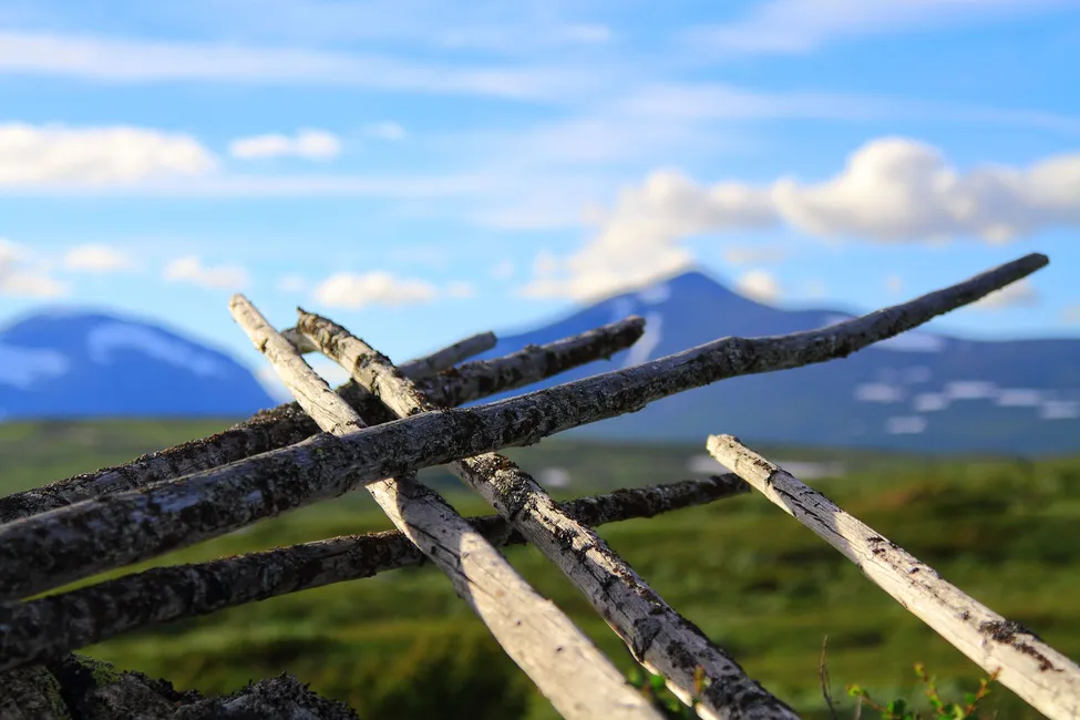 En gammal fisknätsställning får bilda förgrund till mäktiga Helagsmassivet.