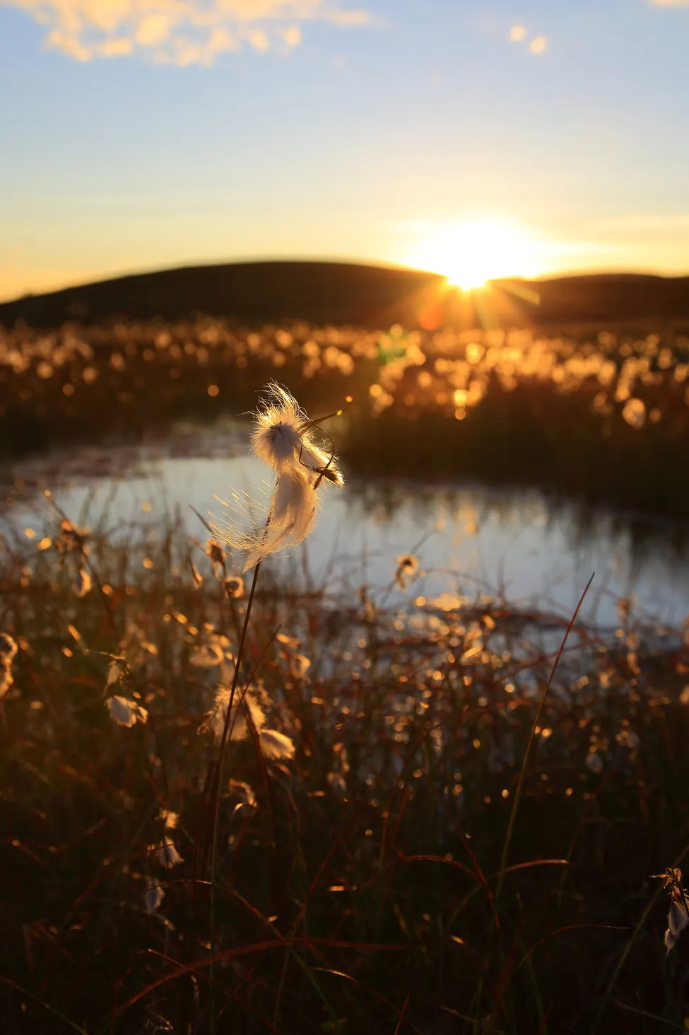 Solen sänker sig bortom Kejsarn, en sydlig utlöpare till Skars. Ängsullen visar sig från sin bästa sida.