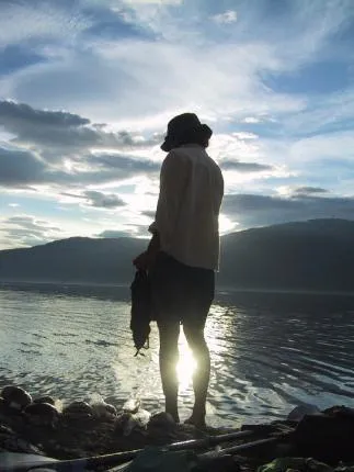 Tandborstning i solnedgång