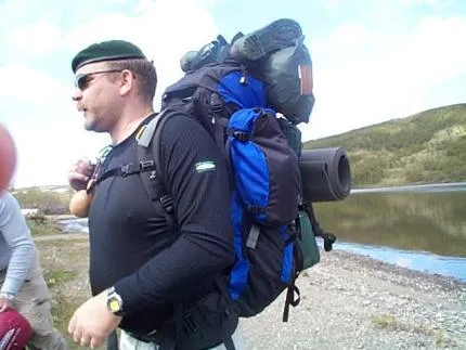 pappa som drar på sig sin rygga (Lundhags Motion 80) (alla som vet vem medlemen canman är har nog sett den här bilden)