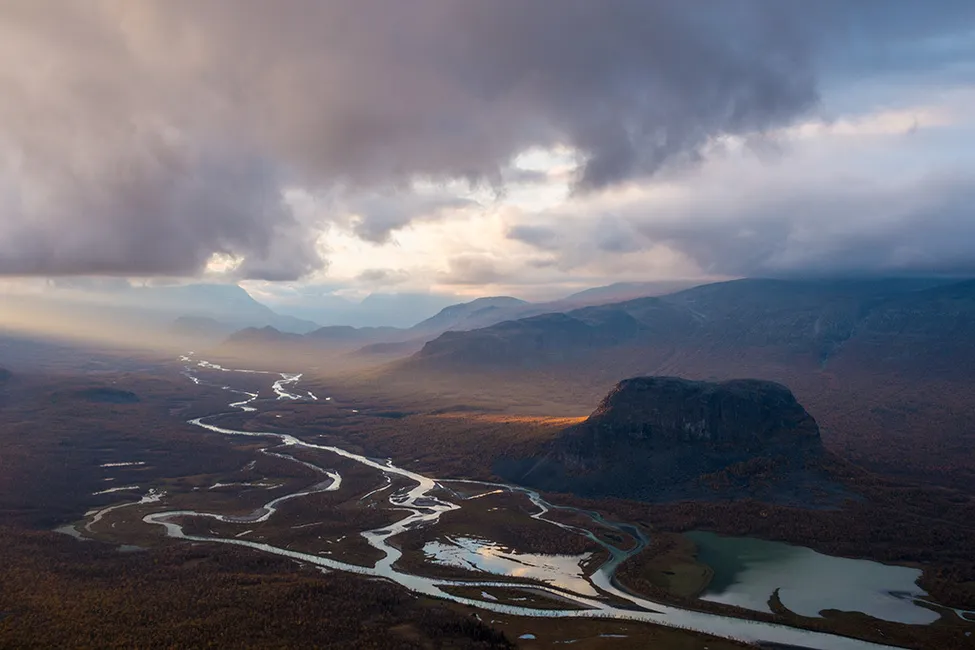 Dagens sista strålar letar sig ner i Rapadalen