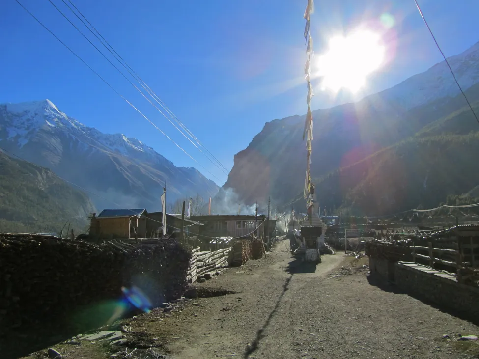 Vi vände tillbaka efter två nätter i Yak Kharka p g a rejäl förkylning. Här; morgon i Humde.