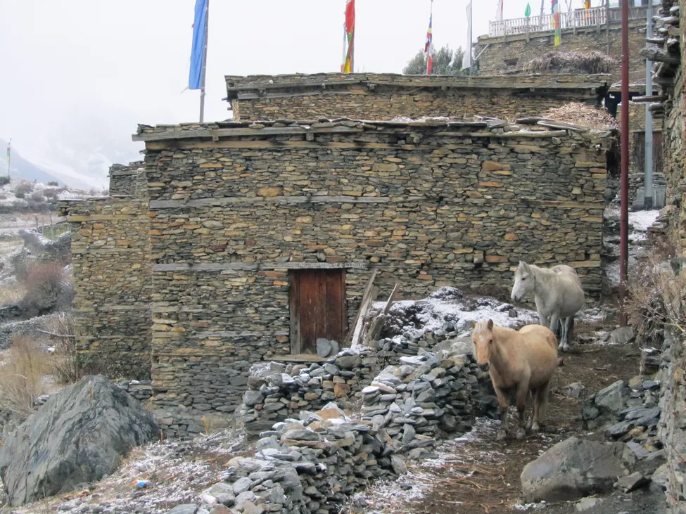 Snöfall över Ngawal.