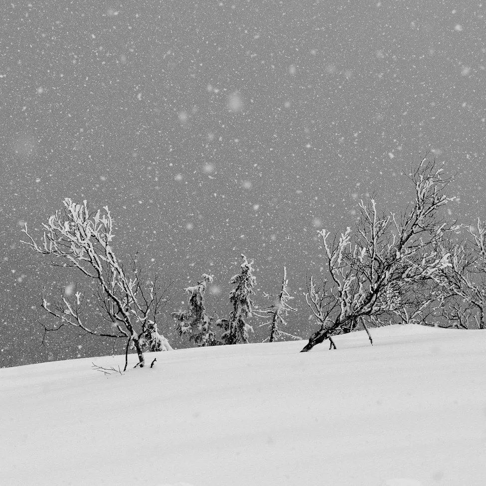 Det är en svartvit värld i snöyran på fjället,men det finns en skönhet även i detta till synes grå,trista tillstånd.