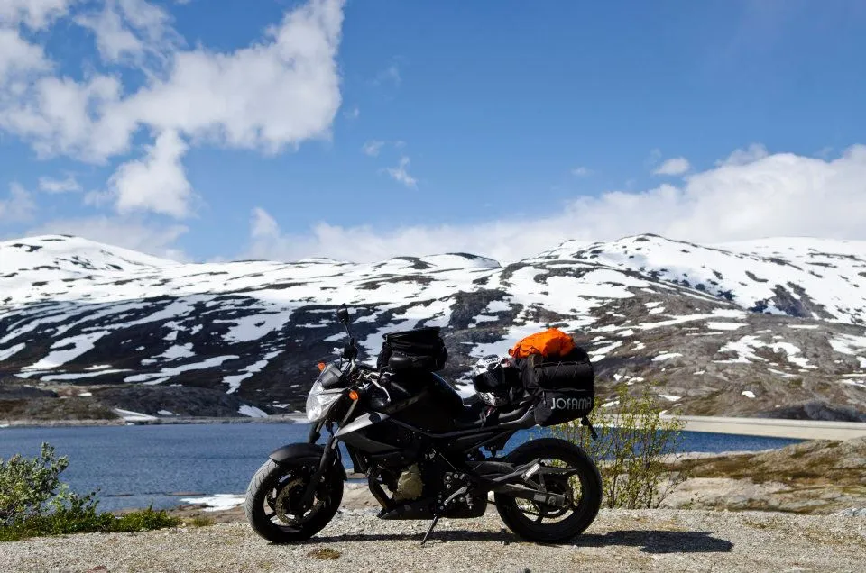 Att byta vandringskängorna mot mc-stövlarna betyder inte att man måste hålla sig borta från de norska utbudet av berg...här är vi på väg mot Atlanterhavsveien.