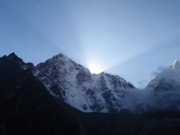 Godnatt säger solen och tackar för sig i Nepal på väg ner från EBC...