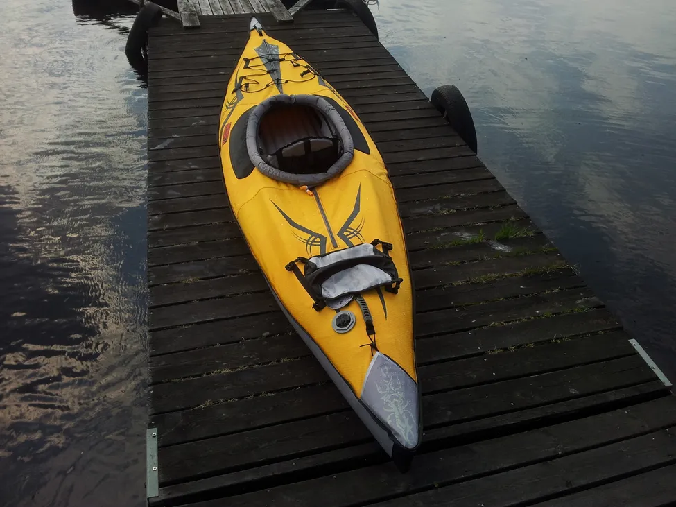 Det är en "AF Expedition". Det är 9 luftkuddar utan ram original. Det finns ett stag i botten som jag sätter dit för att få rakare kurs. Kan lägga ut en bild på den. Det går inte att jämföra med en havskajak eller liknande men för att vara så pass praktisk så är jag nöjd. Slänger in den i bakluckan på bilen när jag paddlat färdigt.