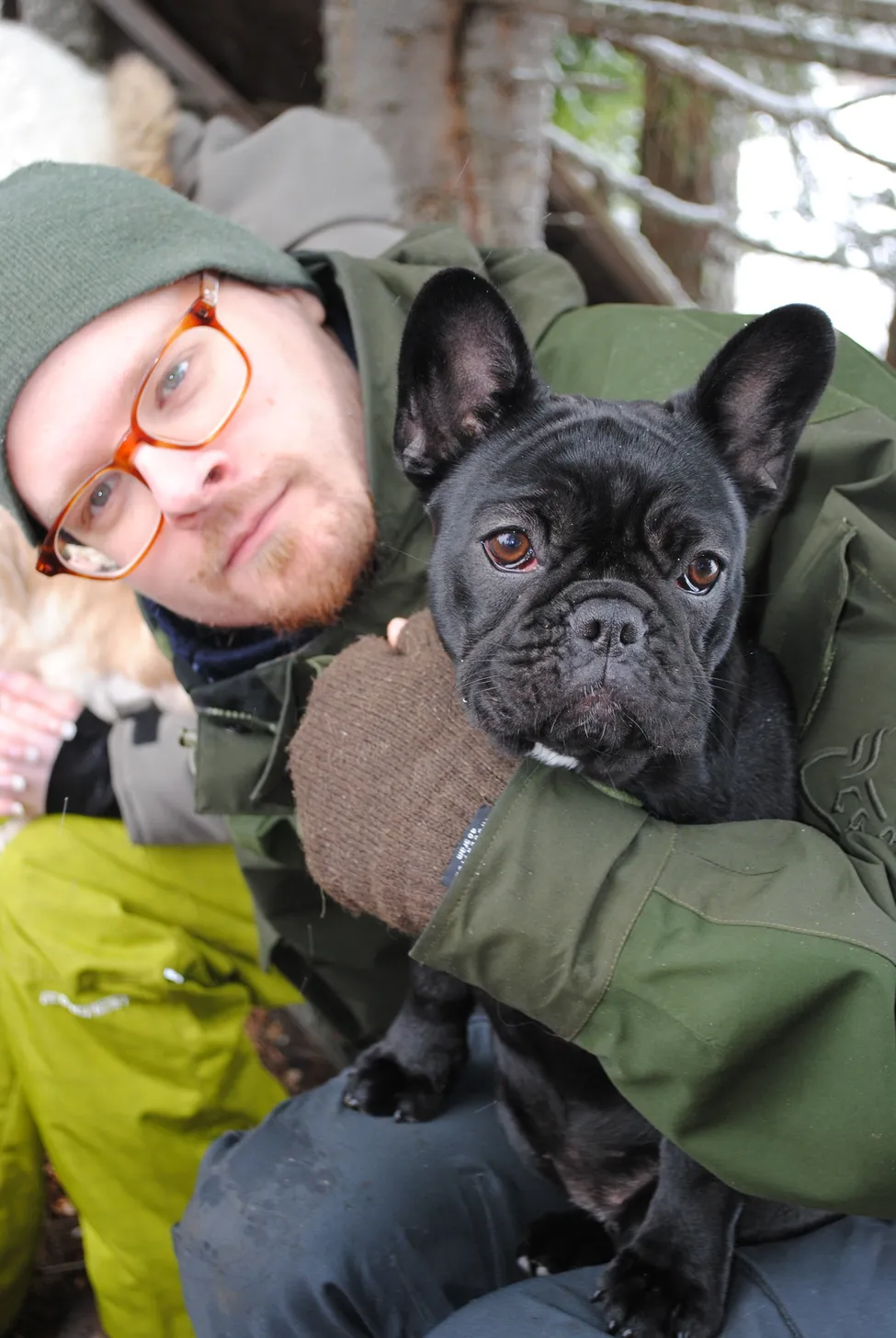 Norröna Recon jacka och min brors Franska Bulldog i väntan på Kolbulle :-)