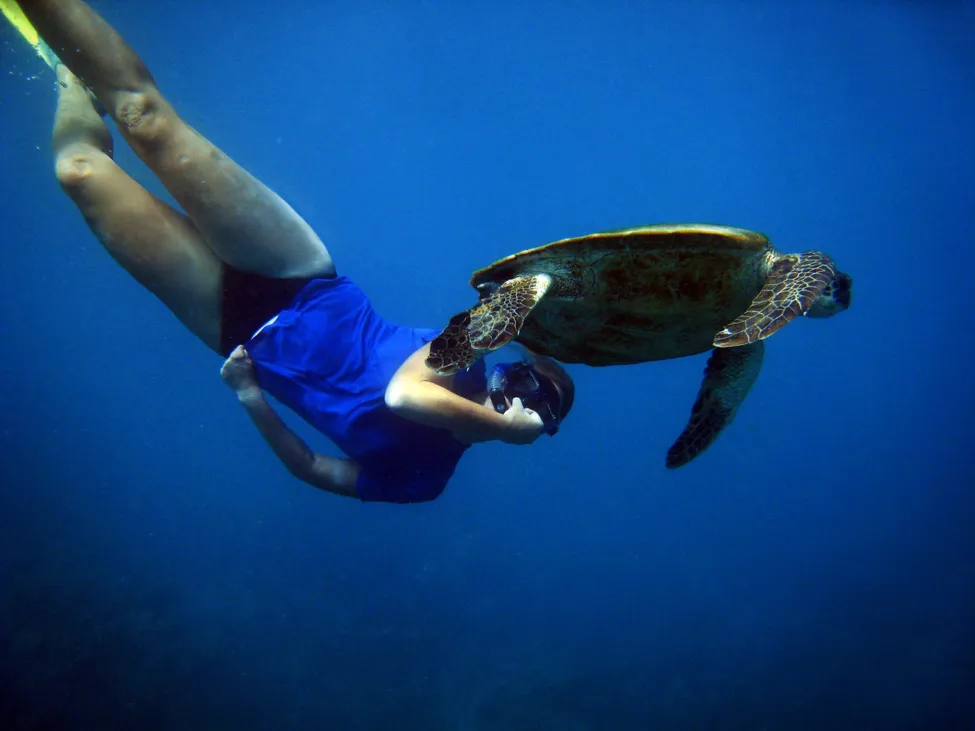Jag såg sköldpaddorna från båten, drog av mig jeansen, grabbade cyklopen och fenorna och kastade mig i vattnet poff. En fotograf på båten var strax på. Simmade senare under en sju helsikes stor manta, kändes helt out of space och sen ett gäng hajar - för att försöka råda bot på min hajnoja - japp jag är sjukt rädd för hajar. Simmade med ett helt gäng människoattackerande hajar men som var fullt upptagna med att flirta och pöka loss. Olala. Vilken dag - liv all in!