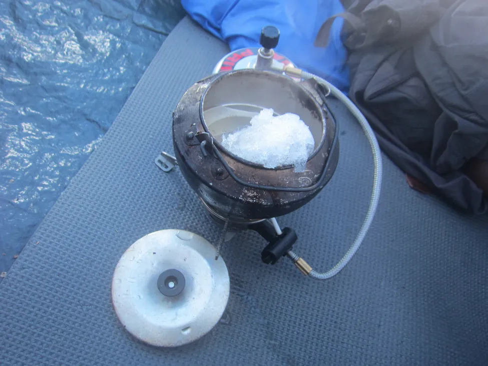 Vattnet tog slut och vad gör man då? Smälter snö och kokar så klart. Ett riktigt drygt tidsfördriv..