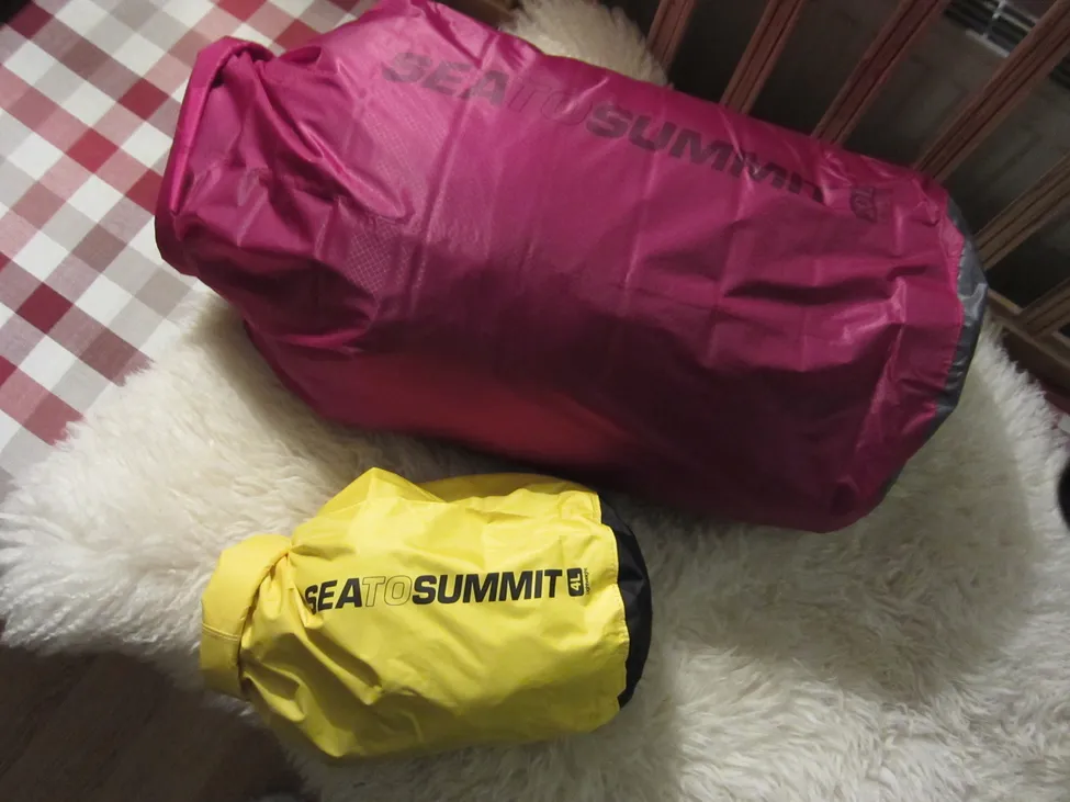 Nya vattensäkra packsäckarna 20L, respektive 4L från Sea to summit.