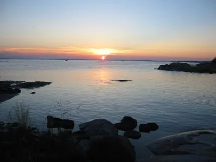 Efter en lång paddlingsdag hamnade vi på en liten ö med en fyr i ytterskärgården och njöt av den vackra