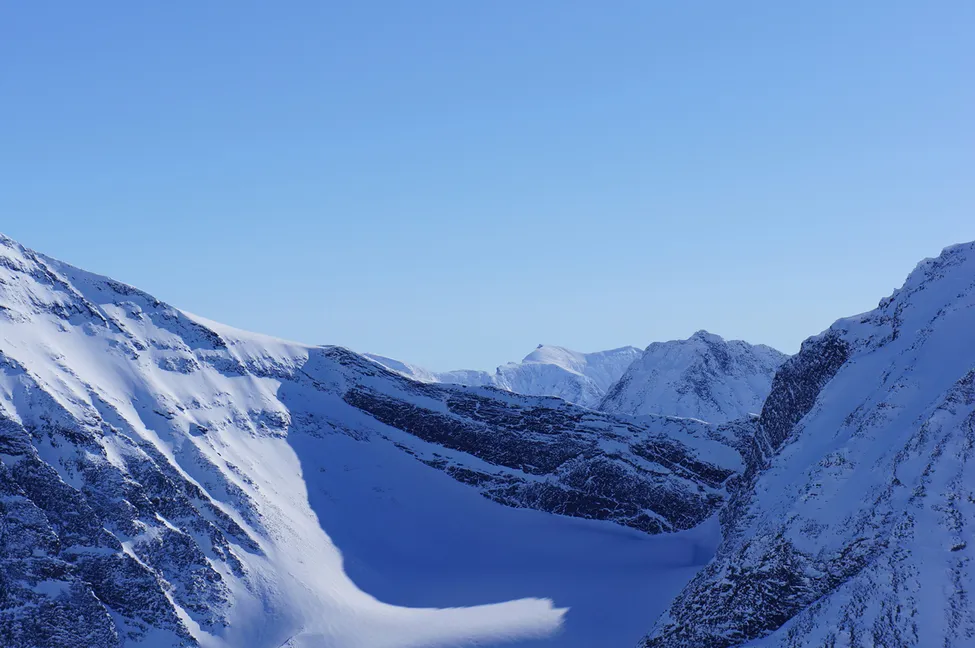 16 Räitatjåkka i förgrunden, längst bort Kebnekaise nord och sydtopp.