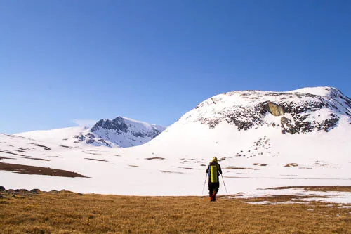 Ett andetag, doften av solvarm vegetation. En tindrande sol, stillheten och snösparvarnas kvittrande. En av fjällets vackraste sidor.