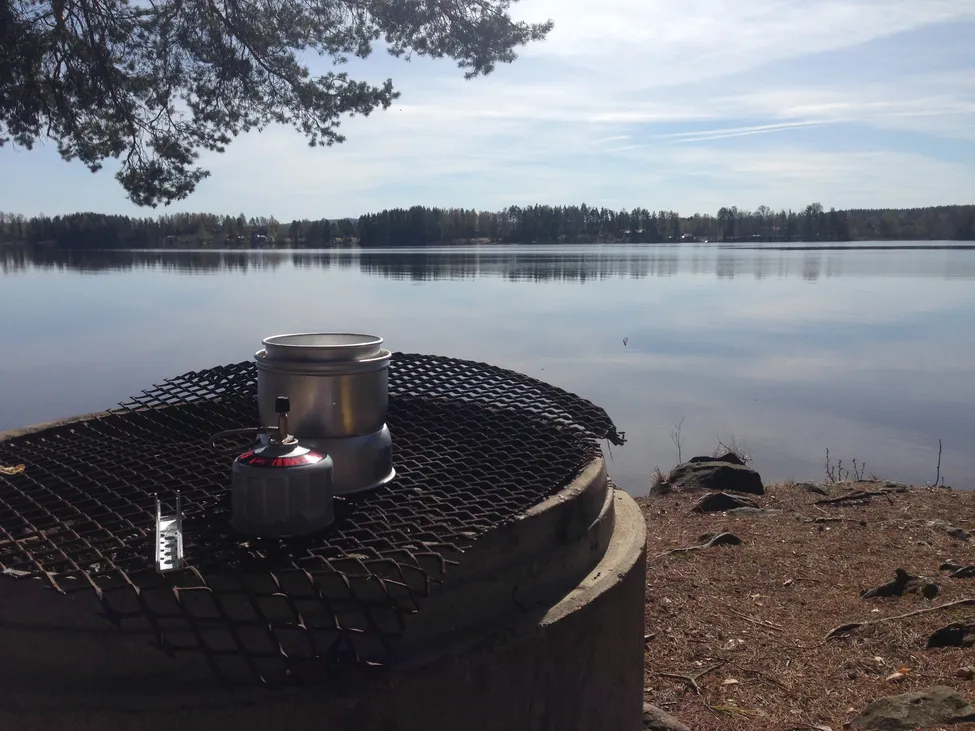 Årets första paddling. Morgonen bjöd på minusgrader men dagen utvecklade sig till en varm och vindstilla tur.