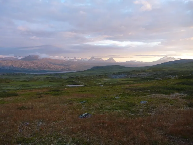 Utsikt med Ahkka- och Sarekmassivet i bakgrunden