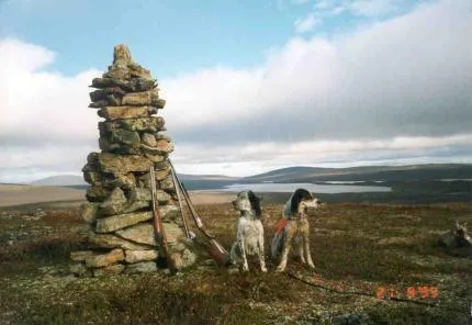 Här har en av mina valpköpare - Rauno Mäyrä - skickat ett foto på hundarna och en mäktigt utsikt, under en jakttur i Finland
