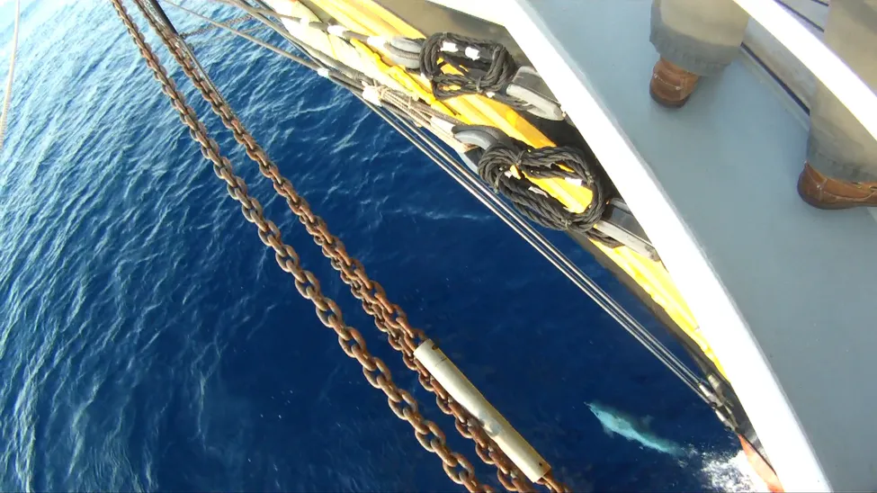 Delfinerna kom ibland och simmade och lekte framför skeppet