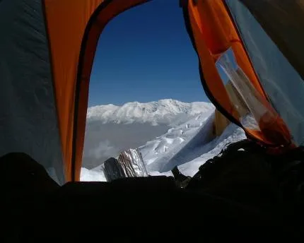 Tidig morgon, utsikt ur tältet ca 6000 m