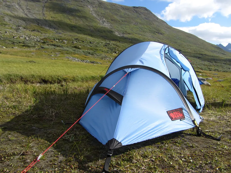 Solig start på dag 4. Tältet är ett Fjällräven Akka 2 Shape RS