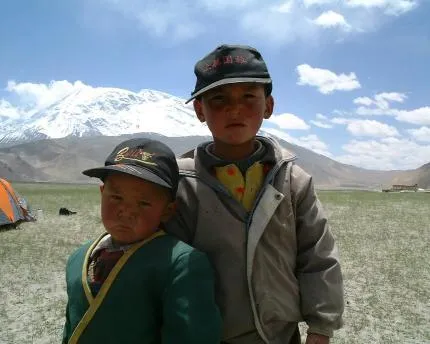 Två pojkar nära deras hydda i Pamir, Xi'an