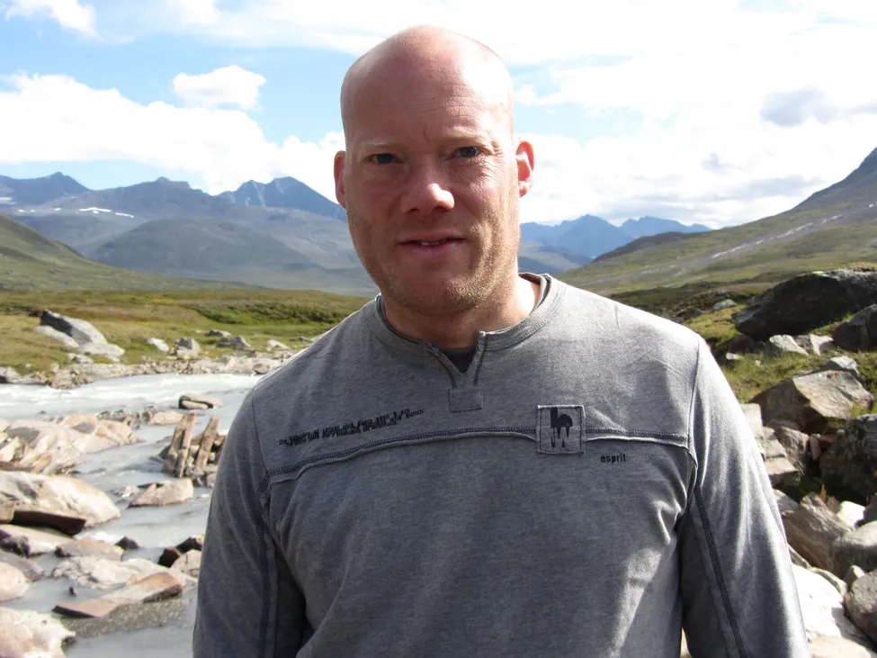 Jag i Alggavagges mynning med utsikt bak mot Sarekmassivet