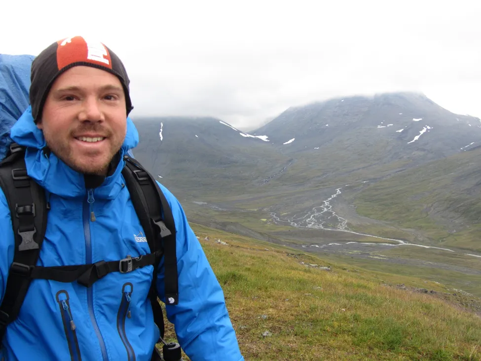 Per gör sig redo för dag 5 i regn. Nedstigning till Sarvesvagge väntar