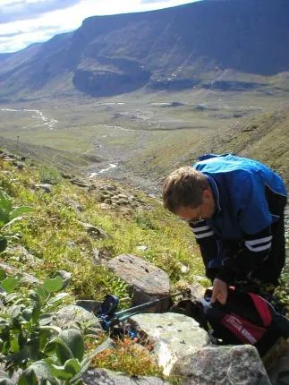 Pappa Lars på väg upp längs västra leden, alldeles nedanför Tuolpagorni.