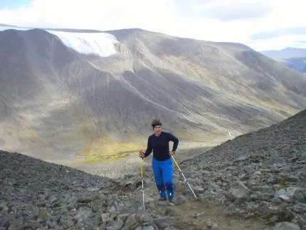 Jag på väg mot Kebnekaises sydtopp längs västra leden, alldeles mellan Tuolpagorni och Vierremvare(?).