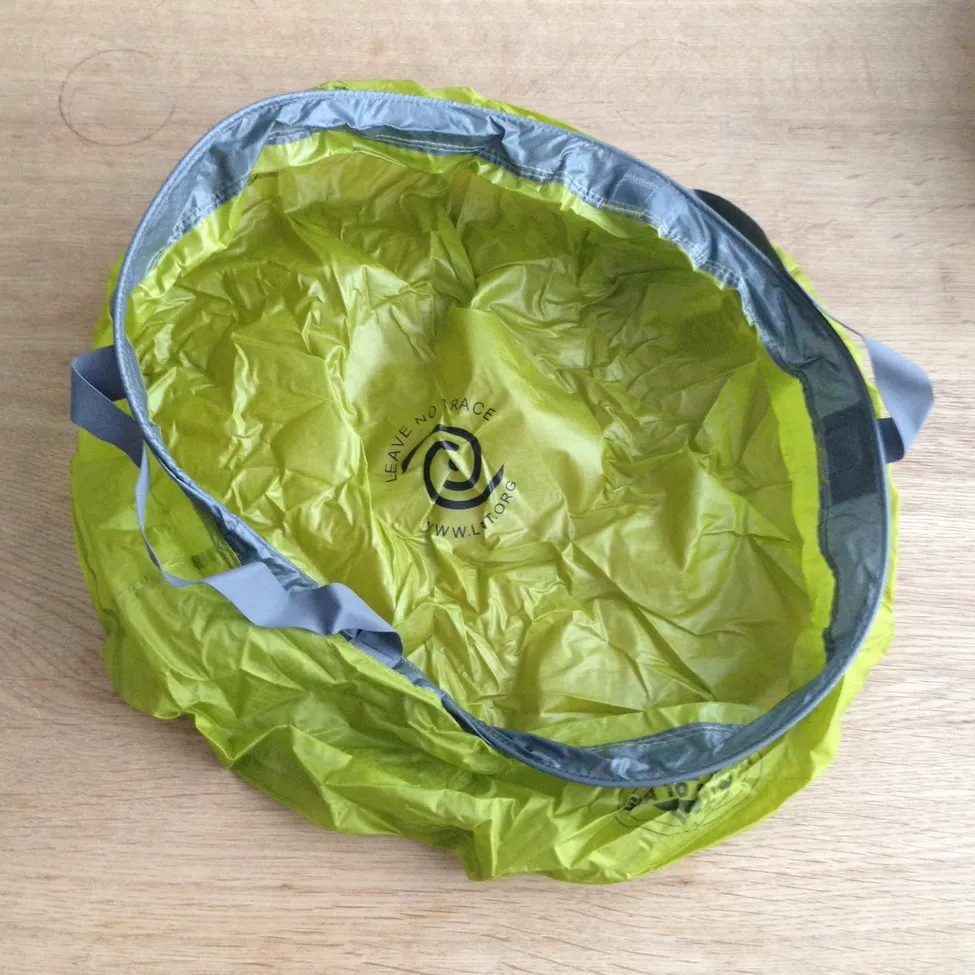 Japp, så ser den ut, utan vatten förvisso, men den ger ett gediget och bra intryck. Två handtag sitter ordentlige fastsydda i ovankanten vilket gör det lättare att förflytta den med vatten i.
