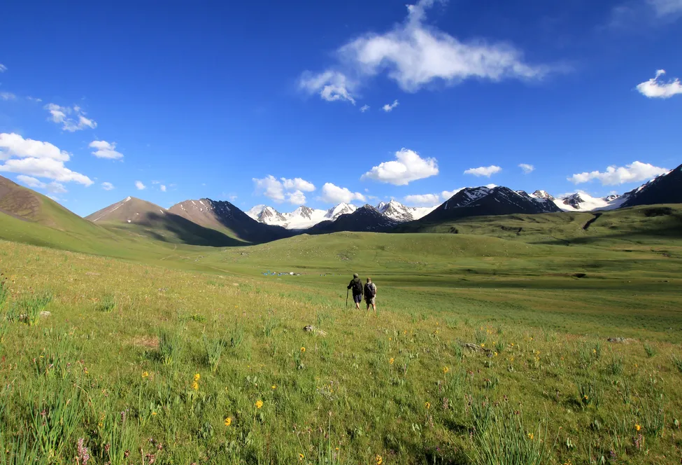 Här med vår duktiga zoolog samt en kirgistansk voluntär på väg bort till campen.
